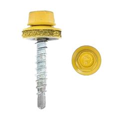 Стальные саморезы с шестигранной со сверловидным наконечником, укомплектованные шайбой с резинкой, для крепления кровельных материалов к деревянной обрещетки. Оцинкованные кровельные саморезы 4,8×70 мм с герметичной EPDM-прокладкой, стойкие к коррозии, идеально подходят для монтажа кровли. 1500 шт.