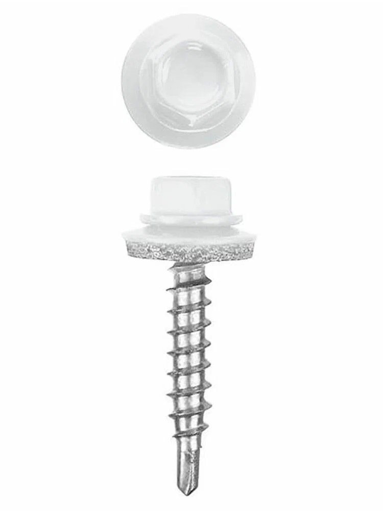 Оцинкованный белый саморез с EPDM-шайбой 4,8×50/51 мм для герметичного и прочного крепления кровли. В упаковке 2400 шт. Подходит для металлочерепицы.