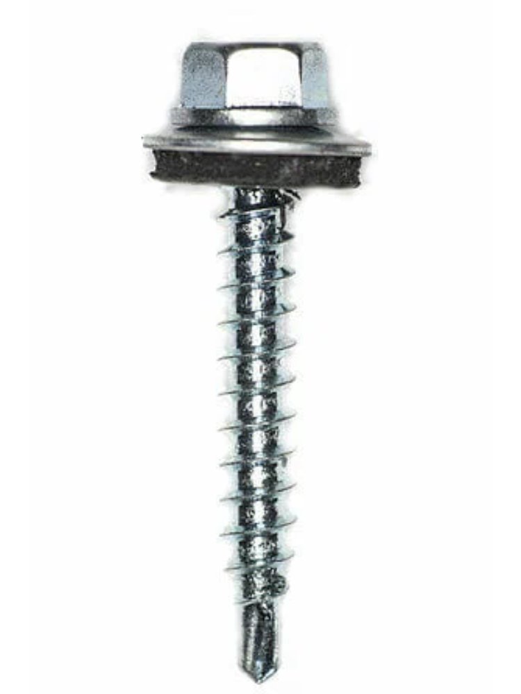 Стальные саморезы с шестигранной со сверловидным наконечником, укомплектованные шайбой с резинкой, для крепления кровельных материалов к деревянной обрещетки. Оцинкованные саморезы 4,8×50/51 мм с шайбой, для кровли и фасада. 2500 шт. Высокая прочность и защита от коррозии. Легкий и надежный монтаж.