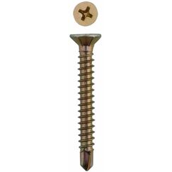 Стальные желтые саморезы со сверлом и насечками на конусной части головки для крепления металлического профиля в рамных пластиковых конструкциях , подходит для автоматической линии Быстрый монтаж металлопластиковых окон, устойчив к коррозии, бурное сверление, прочная фиксация, упаковка 11000 шт.
