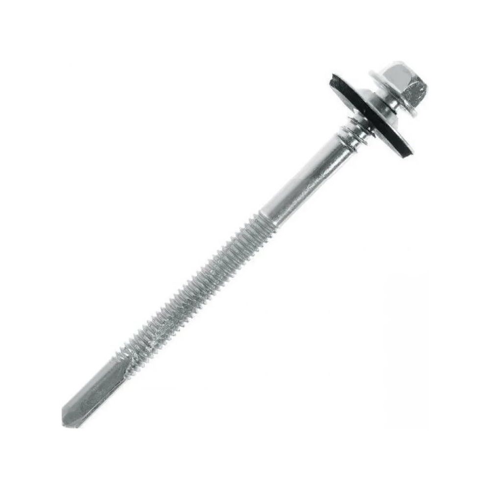 Стальные оцинкованные саморезы с шестигранной головкой и сверловидным наконечником, укомплектованные шайбой и резиновой прокладкой, для крепления фасадных слоистых плит к металлическим несущим конструкциям. Оцинкованный саморез с буром 5,5/6,3×185 мм для сэндвич-панелей. 450 штук в упаковке. Высокая коррозионная стойкость и надежное крепление.