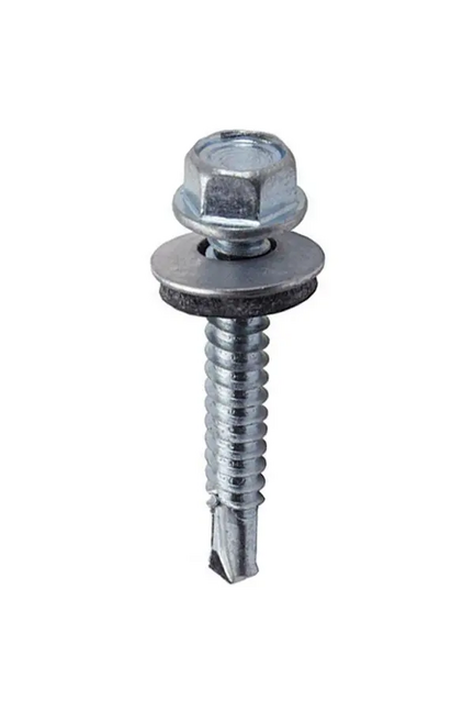 Кровельные саморезы 5,5×32 мм, оцинкованные, устойчивы к коррозии, подходят для монтажа профнастила и металлочерепицы, без сверления.