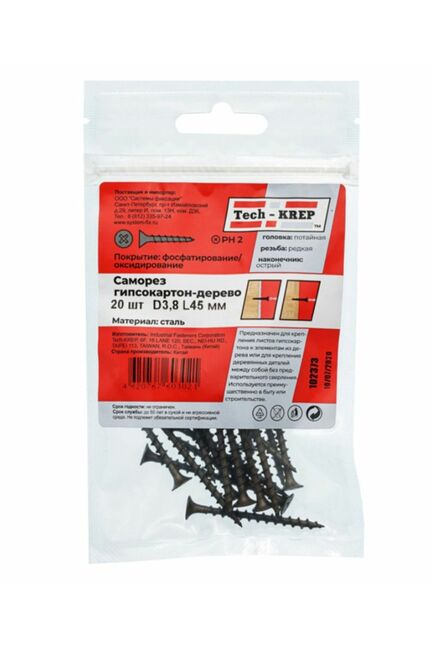 Саморез по дереву 3,8х45 (20 шт) - пакет Tech-Krep в Амурск