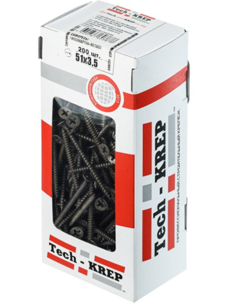 Надежные саморезы по дереву 3,8х51 от Tech-Krep — ваш надежный выбор для быстрой и прочной фиксации в строительстве и ремонте. Идеально подходят для крепления деревянных конструкций, листовых материалов, элементов обшивки и монтажных работ внутри и снаружи помещений.