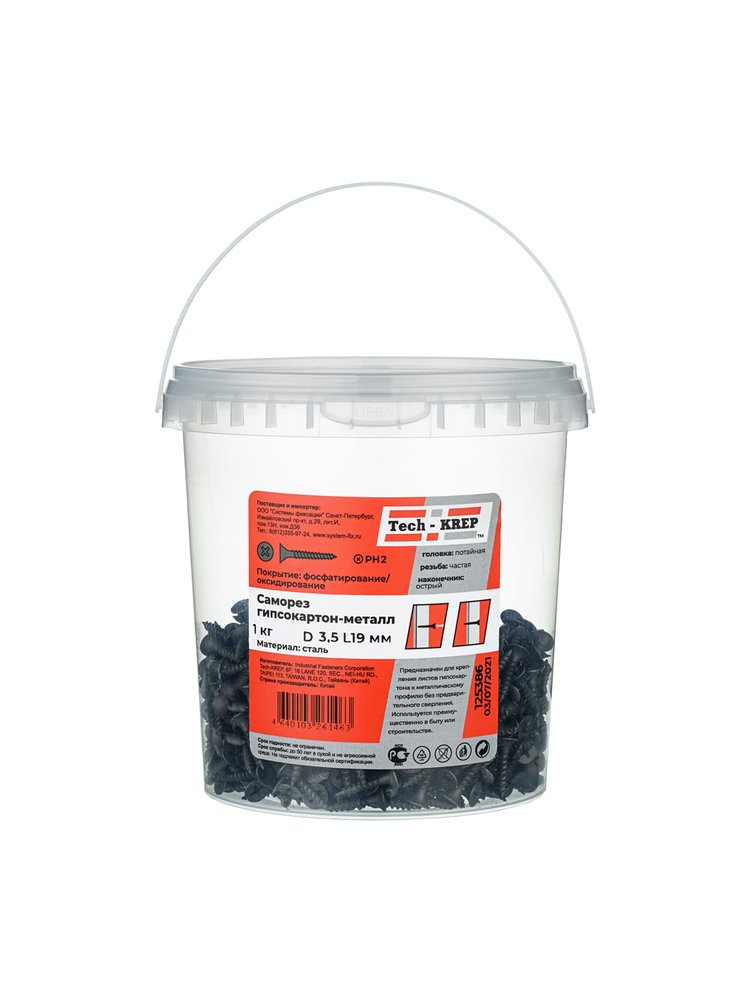 Саморез по ГВЛ 3,9х19 (1000 шт) - ведро Tech-Krep в Амурск