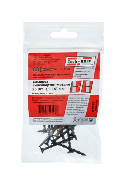 Саморез по металлу 3,5х41 (25 шт) - пакет Tech-Krep в Амурск