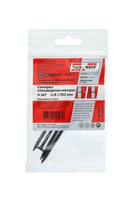 Саморез по металлу 4,8х100 (4 шт) - пакет Tech-Krep в Амурск