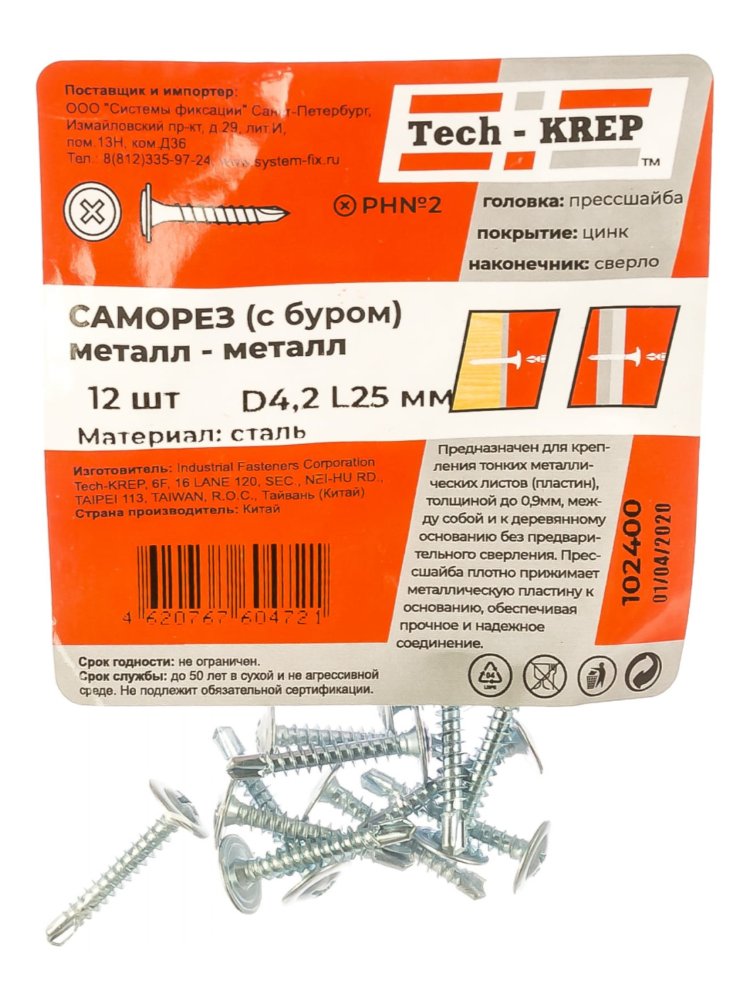 Практичный выбор для быстрых и прочных соединений: саморезы с прессшайбой размером 4,2х25 мм подойдут для крепления металлических листов, пластиковых и деревянных конструкций внутри и снаружи помещений. Идеальны для монтажа профилей ГКЛ, листовых материалов и тонких металлоконструкций.