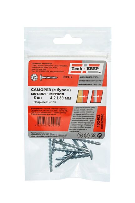 Саморез с п/ш св. 4,2х38 (8 шт) - пакет Tech-Krep