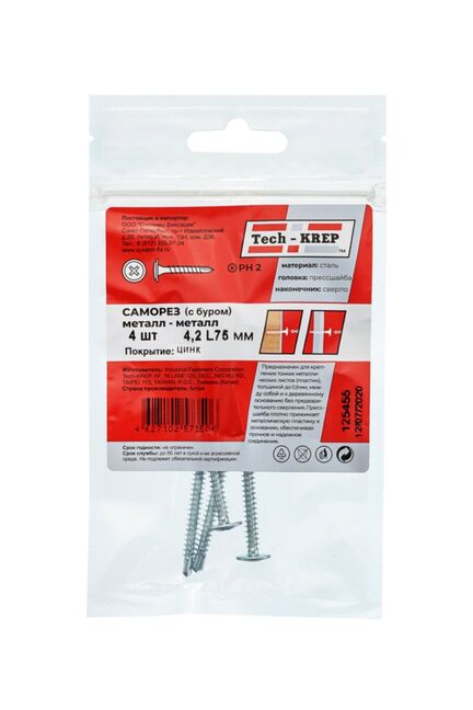 Саморез с п/ш св. 4,2х75 (4 шт) - пакет Tech-Krep