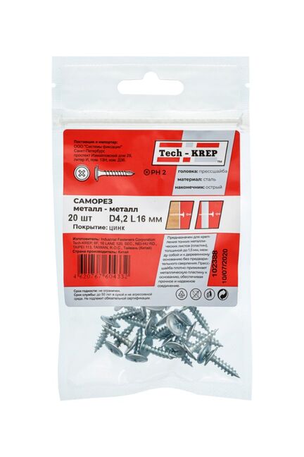 Саморез с п/ш4,2х16 бел. (20 шт) - пакет Tech-Krep в Амурск
