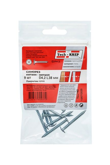 Саморез с п/ш4,2х38 (9 шт) - пакет Tech-Krep в Амурск