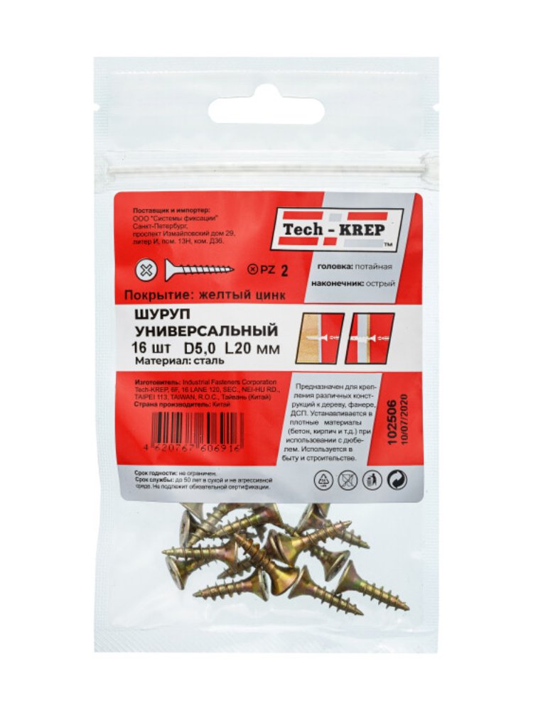 - Размер: 5,0х20 мм — оптимален для стандартных монтажных задач