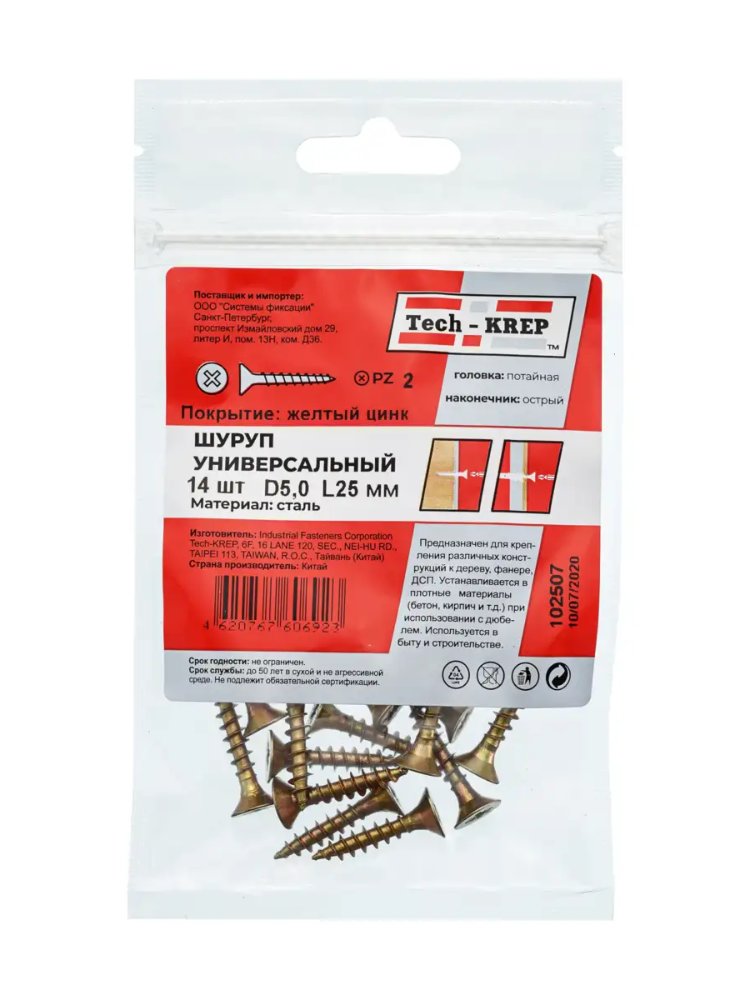 Саморез универс. желтый 5,0х25 пот. гол. (14 шт) - пакет Tech-Krep в Амурск
