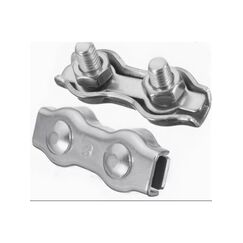 Применяется при производстве грузоподъемных работ для сращивания стальных тросов, канатов диаметром от 2 до 10 мм и для формирования петель на их концах. При установке зажима стальной трос или канат размещается на пластине-основании по обоим краям, затем прижимается второй пластиной и затягивается гайками. Двойной зажим D-SWR (Duplex) отличается от одинарного зажима C-SWR (Simplex) более высокой прочностью сращивания. Прочный оцинкованный зажим для троса 8 мм, duplex-тип, 75 шт. в упаковке — надёжное крепление для строительно-монтажных работ.