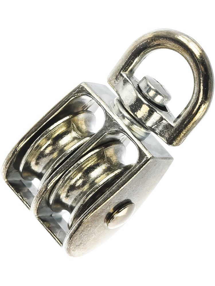 Двойной блок BK-Duplex металл применяется для изменения направления движения тросов, веревок и канатов, увеличения силы в грузоподъемном оборудовании. Двойной металлический блок 40 мм для подъёма и перемещения грузов, выдерживает большие нагрузки, обеспечивает плавный ход каната.
