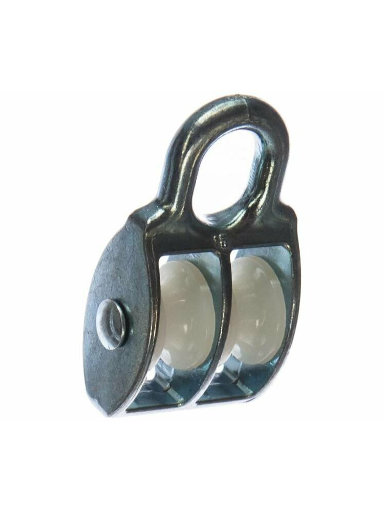 Двойной нейлоновый блок 25 мм для кабелей и грузов, обеспечивает плавный ход, стойкость к износу и простоту монтажа в строительстве и быту.