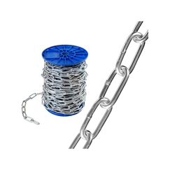 Оцинкованная стальная цепь 1,5 мм/100 м стандарта DIN766: устойчива к коррозии, подходит для крепежа, подвесных и строительных работ.