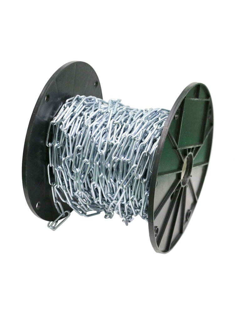 Длинозвенновая оцинкованная цепь из углеродной стали. Цепь имеет большую степень свободы за счет длинных звеньев. Длиннозвенная оцинкованная цепь 3 мм, 60 м, DIN763, выдерживает нагрузку до 90 кг, устойчива к коррозии, универсальна для строительных работ.
