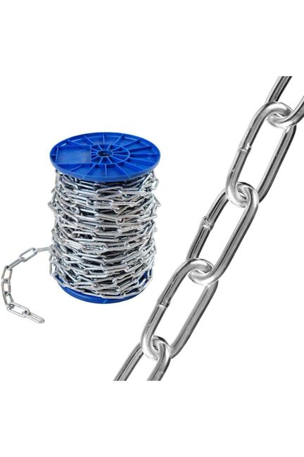 Длинозвенновая оцинкованная цепь из углеродной стали. Цепь имеет большую степень свободы за счет длинных звеньев. Прочная длиннозвенная цепь DIN763, 8 мм, цинк, устойчива к коррозии, подходит для строительных и монтажных работ, длина 10/20 м.