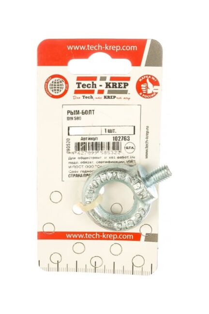 Рым-болт DIN580 М10 Tech-Krep из углеродистой стали с цинковым покрытием. Грузоподъемность до 230 кг. Для подъема грузов и такелажных работ.
