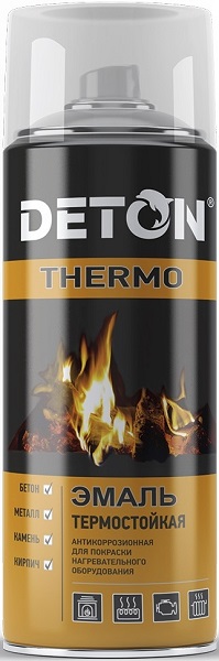 Предназначена для защиты металлических и других поверхностей, подверженных воздействию температуры до +400°С. Может быть использована для окрашивания нагревательного оборудования и печей, кирпичных, бетонных, асбестовых поверхностей, а также выхлопных систем автомобиля и глушителей с целью их предохранения от воздействия высоких температур, атмосферных осадков и агрессивных сред. Термостойкая эмаль в аэрозоле выдерживает до 800°C, подходит для печей и каминов, быстро сохнет, защищает от коррозии, легко наносится.