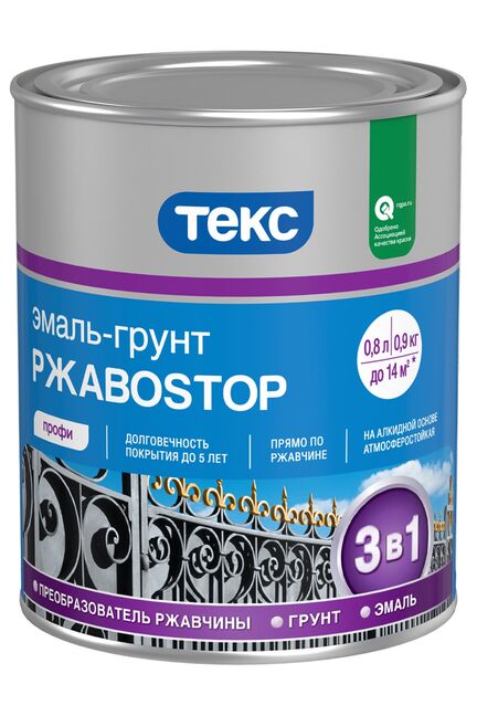 Грунт-эмаль по ржавчине алк. РжавоSTOP серая 0,9кг ТЕКС глянц в Амурск