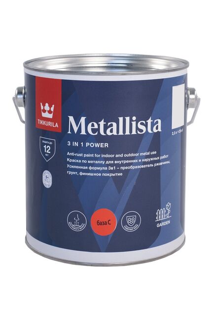 Специальная атмосферостойкая краска по ржавчине для внутренних и наружных работ, сочетает в себе свойства преобразователя ржавчины, антикоррозионной грунтовки и декоративного финишного покрытия. Стальные и чугунные конструкции, садовая мебель, гаражи, ограды, решетки и т.п. Не применяется для полов и ступеней лестниц.Глянцевый. Расход 10–13 м²/л. Время высыхания: 10 часов (базы: А, С / готовые цвета: черный, зеленый, темно-серый, темно-коричневый); 16 часов (готовые цвета: золотистый, серебристый), от пыли - 2 часа.