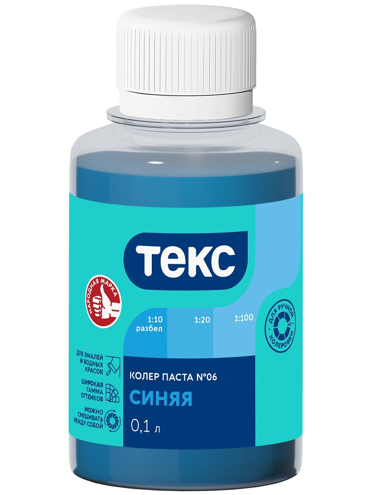Превратите обычную отделку в яркое индивидуальное решение с универсальным синим колером ТЕКС 0,1 л. Он профессионально подходит для колеровки водно-дисперсионных, акриловых, известковых, клеевых и масляных красок, а также шпатлевок и штукатурок. Колер легко смешивается, обеспечивает насыщенность оттенка и равномерный цвет по всей поверхности.