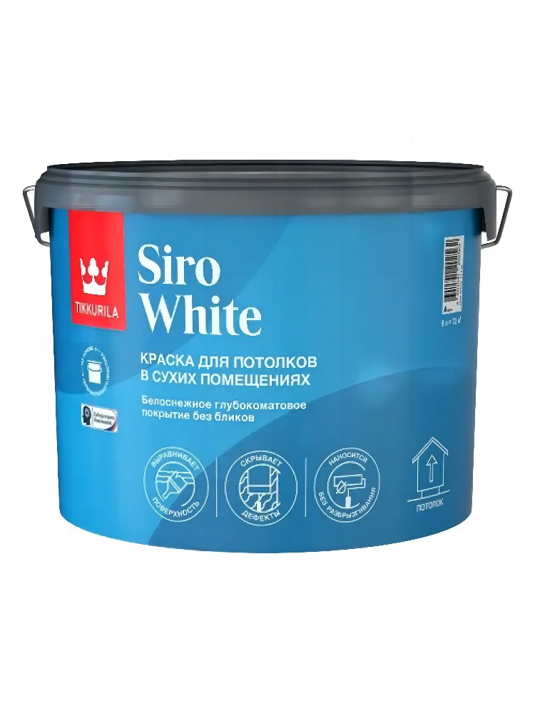 Краска для потолка SIRO WHITE A гл/мат 9л Tikkurila