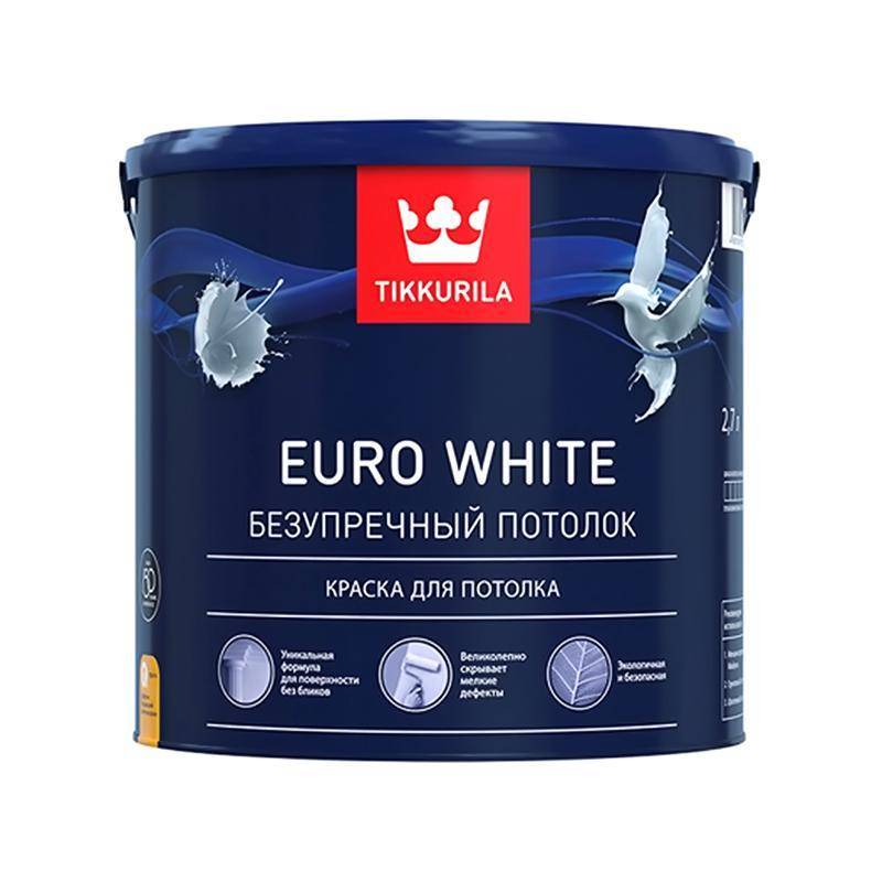 Краска ВД для потолка EURO WHITE белая гл/мат 2,7л Tikkurila