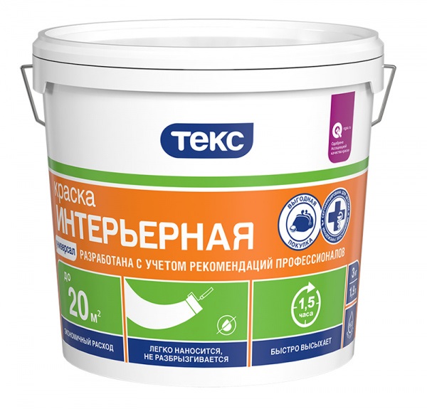 Для окраски стен и потолков внутри сухих помещений по бетонным, оштукатуренным, гипсокартонным, кирпичным и деревянным поверхностям. Глубокоматовая. Время высыхания 1 час. Следующий слой можно наносить через 1,5 часа. Расход 9-11 м²/л по ровной невпитывающей поверхности; 7-9 м²/л по неровной впитывающей поверхности. Разбавитель - вода. Латексная, белоснежная, матовая краска для стен и потолков, быстро сохнет, не имеет запаха, устойчива к истиранию, легко наносится.