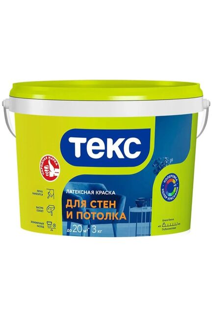 Краска ВД Интерьерн. б/снежн. д/стен и потол. 3кг латексная ТЕКС