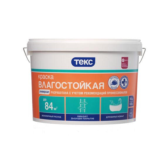 Для окраски стен и потолков внутри сухих помещений и помещений с повышенной влажностью (кухни, ванные, коридоры и др.) по бетонным, оштукатуренным, гипсокартонным, кирпичным и деревянным поверхностям.Глубокоматовая. Время высыхания 1,5 часа. Следующий слой можно наносить через 1,5 часа. Расход 5-7 м²/кг (8-11 м²/л) по ровной невпитывающей поверхности; 4-6 м²/кг (6-9 м²/л) по неровной впитывающей поверхности. Разбавитель - вода. Влагостойкая матовая краска, устойчивая к мытью и истиранию, подходит для влажных помещений, легко наносится, без запаха, экономичная.