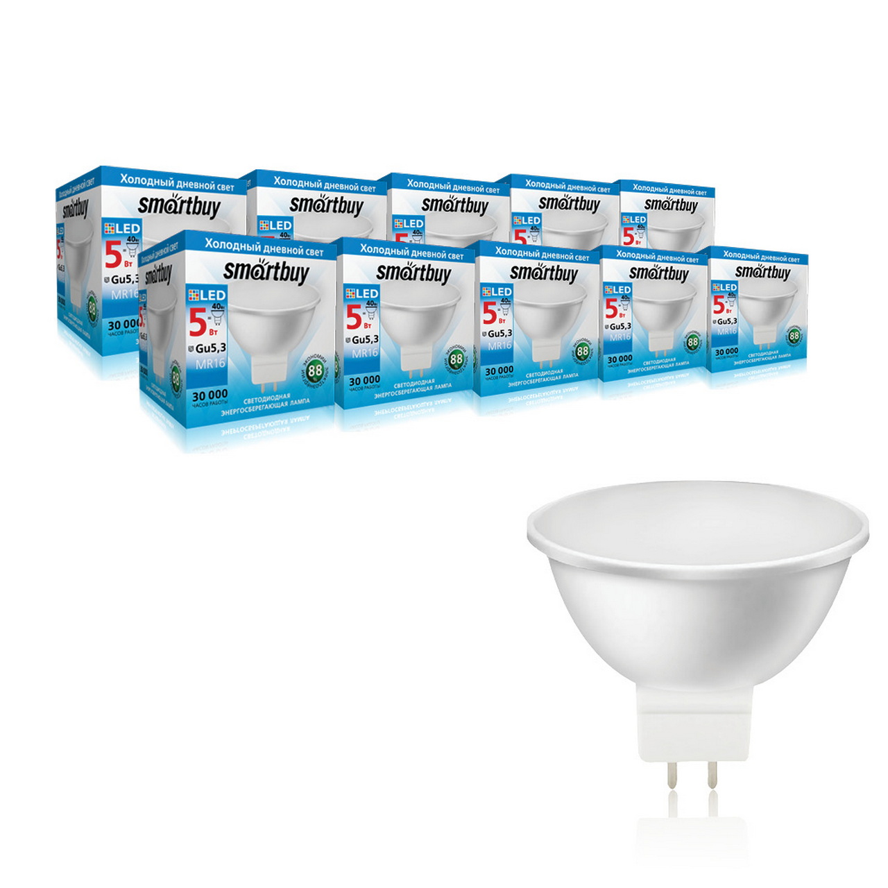 Лампа светодиодная LED-GU5,3 05Вт-6000K Smartbuy