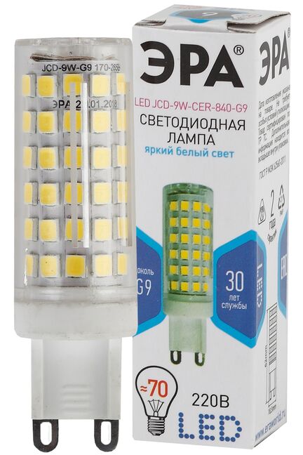 Лампа светодиодная LED-JCD 9Вт 230В 4000К 720Лм G9 CER ЭРА в Амурск