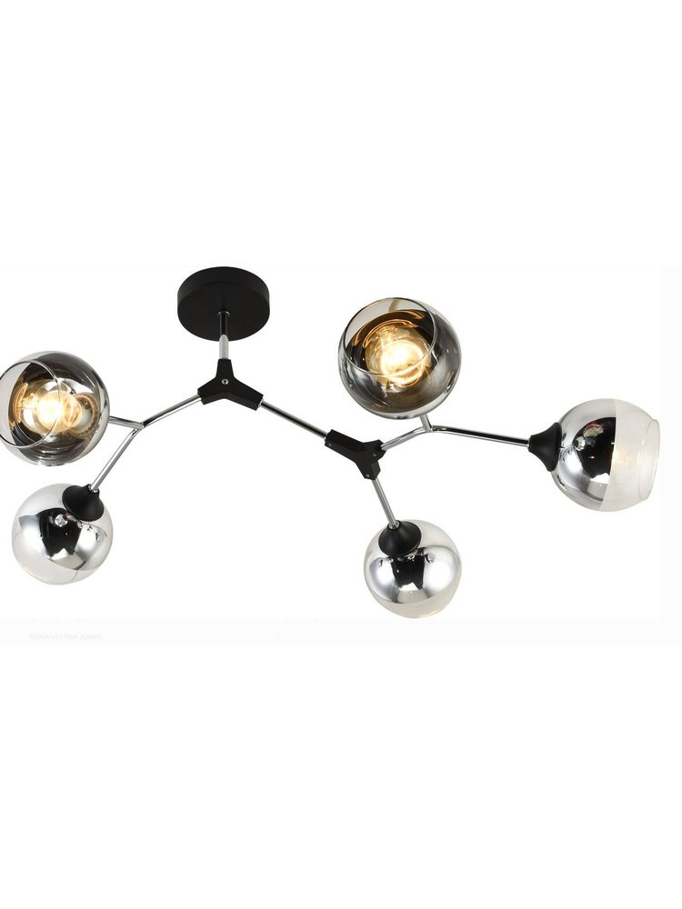 Стильная люстра на 5 ламп E27, черно-хромовое исполнение, совместимость с LED и энергосберегающими лампами, подходит для разных интерьеров.