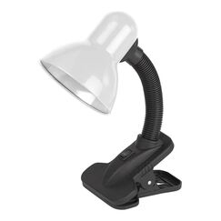 Металлический плафон. Направление света регулируется гибкой стойкой, которая обеспечивает наклон и поворот плафона в любом направлении. Выключатель на прищепке. Предназначен для использования с лампой накаливания или компактной люминесцентной лампой (КЛЛ): максимальная мощность 40W, цоколь E27, 220V 50HZ, лампа в комплект не входит. Гарантия 1 год. Универсальный настольный светильник: гибкая стойка, цоколь E27, матовый корпус, мощность 40 Вт. Легко настраивается и не перегревается.