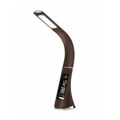 LED лампа 7 Вт с дисплеем (часы, календарь, температура), сенсорное управление, регулируемый наклон, коричневый корпус для офиса и дома.