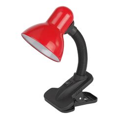 Металлический плафон. Направление света регулируется гибкой стойкой, которая обеспечивает наклон и поворот плафона в любом направлении. Выключатель на прищепке. Предназначен для использования с лампой накаливания или компактной люминесцентной лампой (КЛЛ): максимальная мощность 40W, цоколь E27, 220V 50HZ, лампа в комплект не входит. Гарантия 1 год. Настольный светильник с гибкой регулировкой, цоколем E27, для ламп до 40Вт,  устойчивой основой для комфортной работы и учебы.