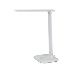 Настольная лампа с сенсорным управлением, светодиодным светом и функцией беспроводной зарядки устройств Qi-стандарта, белый цвет.