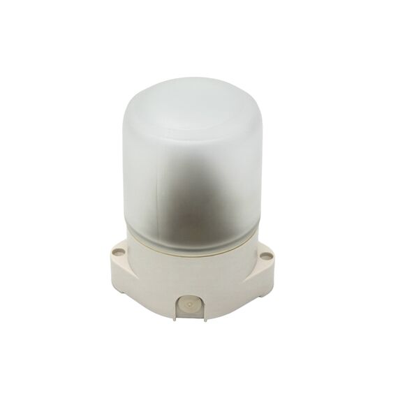 Прочный герметичный светильник IP65 для бани, улицы и влажных помещений, E27 до 60 Вт, пластик/стекло, устойчив к влаге и перепадам температур.
