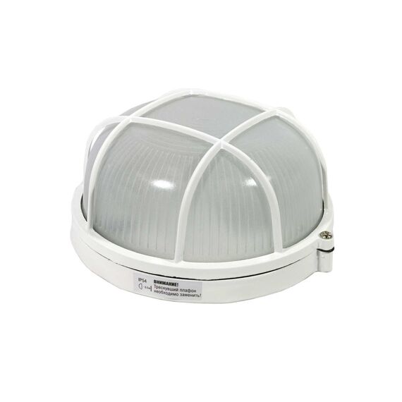 Корпус с решёткой, IP54, круглая белая форма, до 60 Вт, Е27, устойчива к влаге и ударам — для надежного освещения любых помещений.