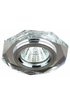 Декоративный встраиваемый светильник,Цвет: хром/серебряный блеск Материал: цинковый сплав Диаметр отверстия, мм: 75 Размер изделия, мм: 85 Мощность, max, Вт: 50 Тип лампы: MR16 Цоколь: GU5.3 Напряжение, В: 12 Производитель: Эра Дизайнерский светильник в форме звезды с эффектом стеклянной крошки, стильное украшение и создает уют в вашем помещении.