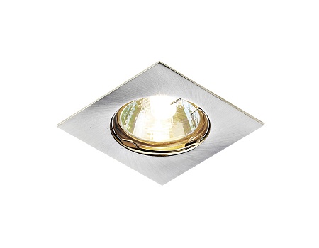 Врезной светильник из металла в цвете "сатиновое серебро", для ламп GU5.3, диаметр 68 мм. Стильное решение для подвесных и гипсокартонных потолков.