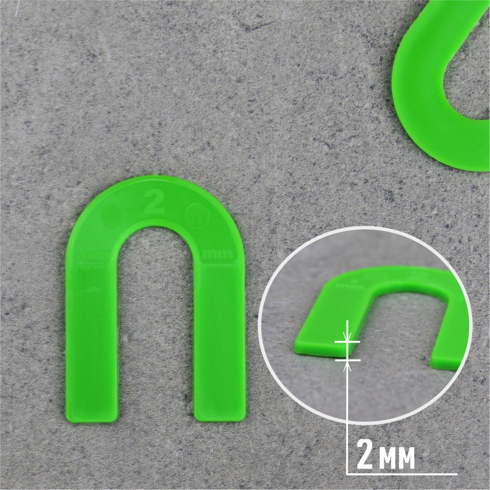 Подкова СВП для формирования межплиточного шва. Для горизонтальной и вертикальной укладки плитки. Подходит для крупноформатного кафеля. Многоразовые подковы 2,0 мм для плитки — ровный шов, прочный пластик, быстрое выравнивание, 50 шт. в пакете, для профессиональной укладки.