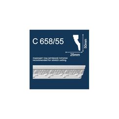 Декоративный молдинг 2 м, 58 мм, влагостойкий, прочный, легко окрашивается и устанавливается, подходит для аккуратной отделки потолка.