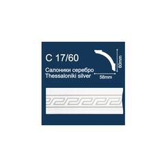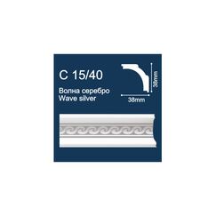 Потолочный плинтус с серебристым декором, устойчив к влаге и повреждениям, легко устанавливается, подходит для отделки жилых и офисных помещений.