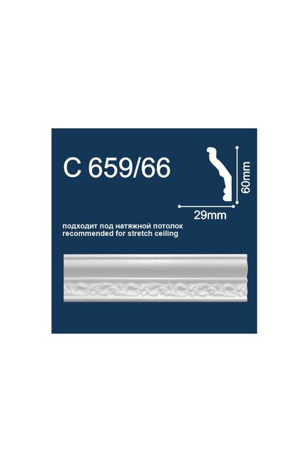 Плинтус потолочный С659/66 (2м/ 60х29мм) (55) Подходит под натяжной потолок в Амурск
