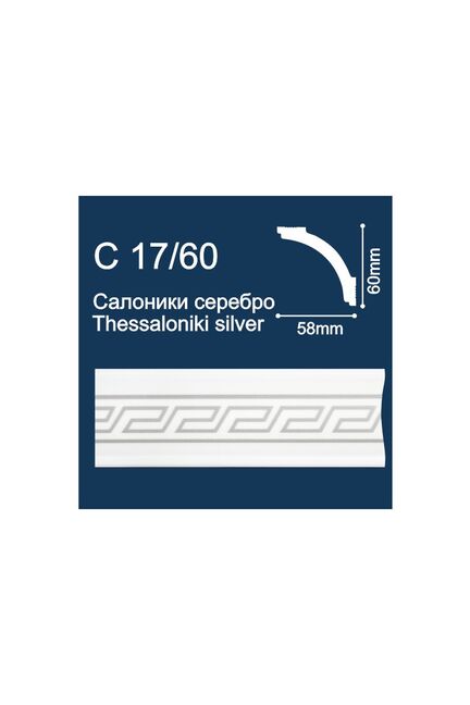 Плинтус потолочный С17/60 (2м/ 60х58мм) с печ. Салоники/ Серебро (96)